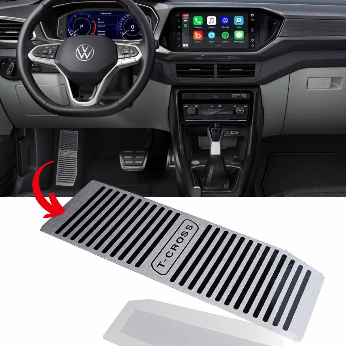 Descanso apoio de pé aço inox escovado para Volkswagwn T-Cross 2020 2021 2022 2023 2024.