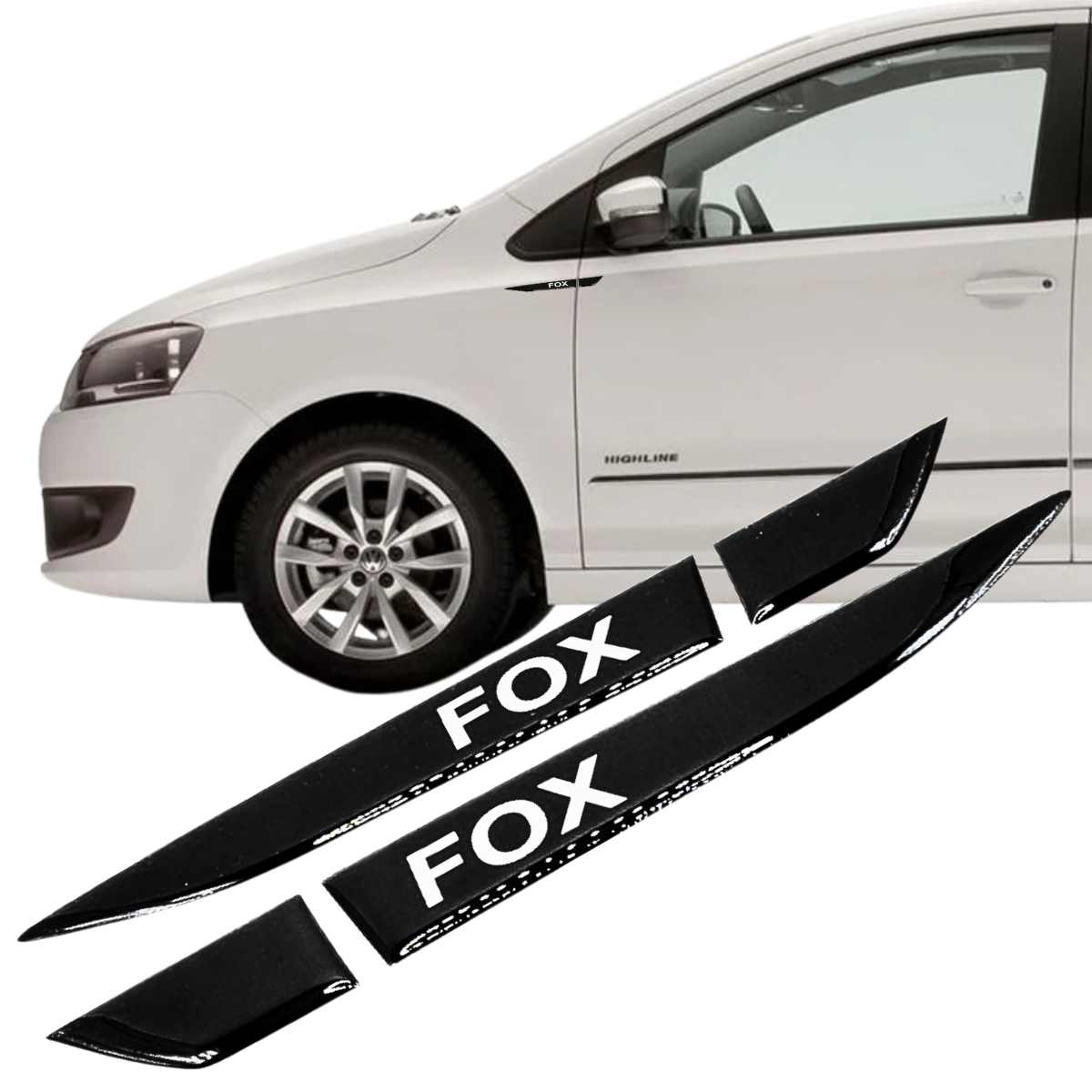 Par de plaqueta em adesivo resinado com nome Cromado Tag Lateral escrita FOX para Porta-paralama.