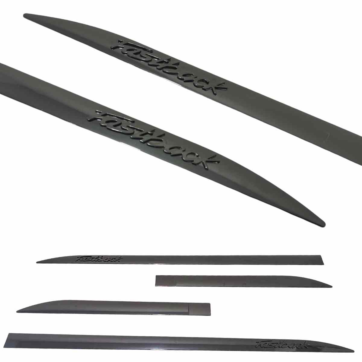 O acabamento na cor tonalidade do veiculo e o nome “Fastback” em alto relevo Black Piano proporcionam uma aparência elegante e discreta, sem descaracterizar o carro. Ideal para quem utiliza o veículo em ambiente urbano e deseja preservar a pintura contra pequenos impactos, riscos de portas e batidas leves em estacionamentos.