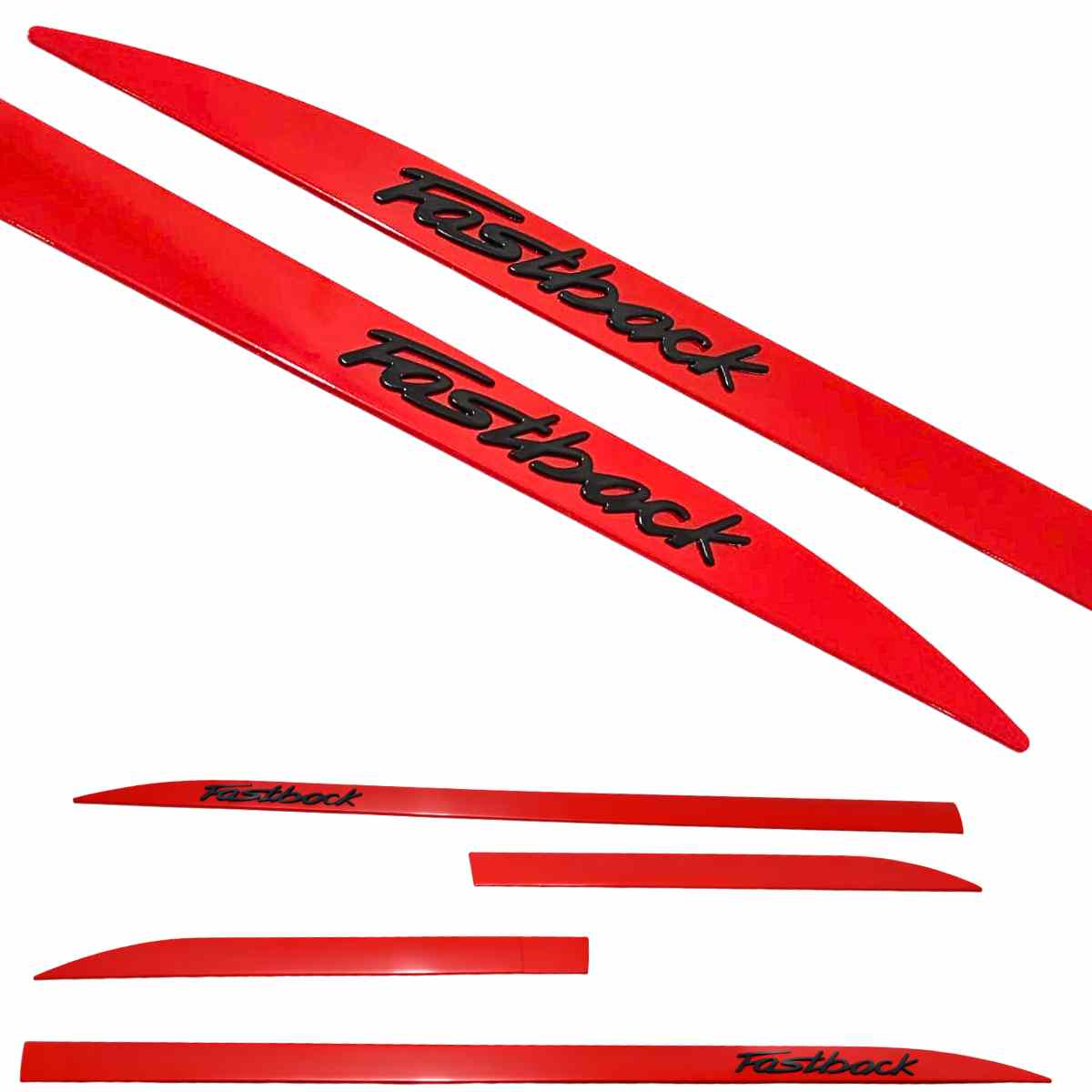 O acabamento na cor tonalidade do veiculo e o nome “Fastback” em alto relevo Black Piano proporcionam uma aparência elegante e discreta, sem descaracterizar o carro. Ideal para quem utiliza o veículo em ambiente urbano e deseja preservar a pintura contra pequenos impactos, riscos de portas e batidas leves em estacionamentos.