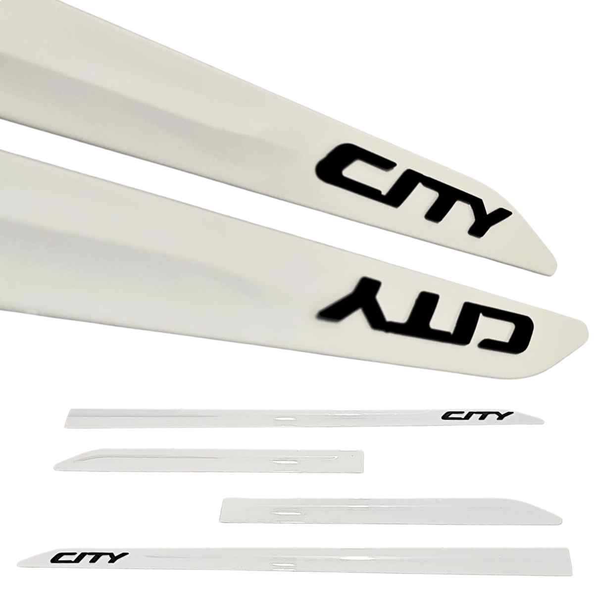 Jogo de Friso Lateral Compatível com City Sedan e Hatch Branco Taffeta cor Solida Nome em alto relevo preto fosco.