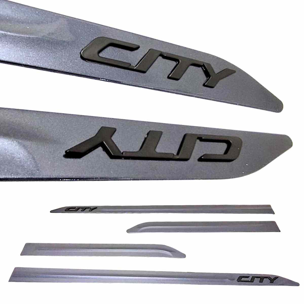 Jogo de Friso Lateral Compatível com City Sedan e Hatch Cinza Basalto Nome em alto relevo preto fosco.