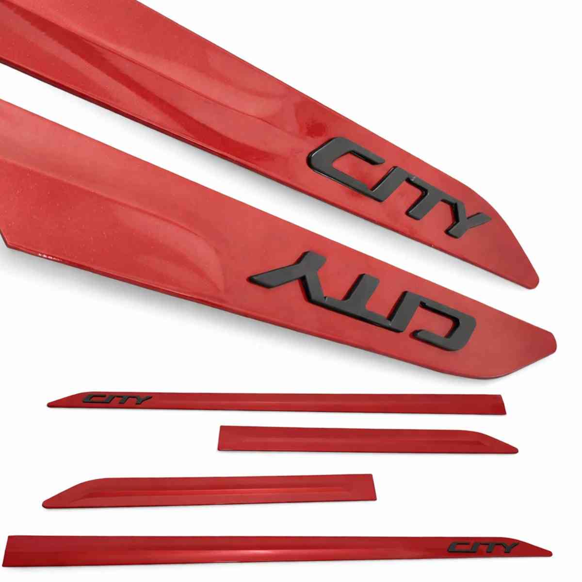 Jogo de Friso Lateral Compatível com City Sedan e Hatch Vermelho Super Nova Nome em alto relevo preto fosco.