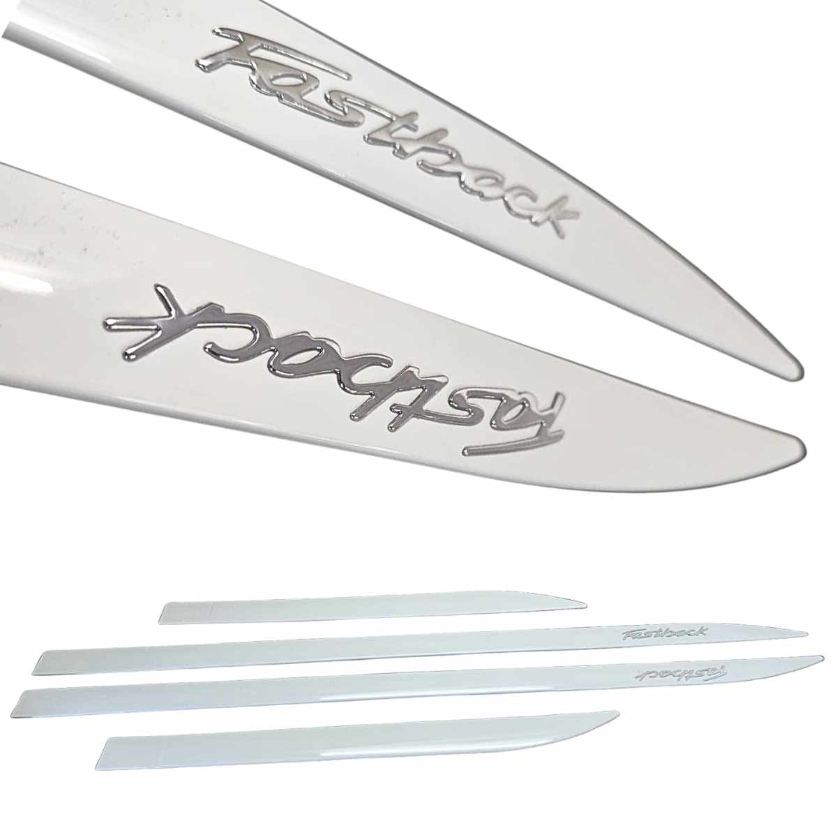 Jogo de friso lateral Fiat Fastback Cor Branco Banchisa Original nome cromado em Alto relevo.