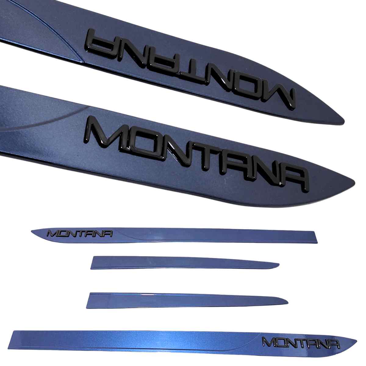 Jogo de friso lateral Nova Montana na cor Azul Boreal com nome Em alto relevo Black Piano.