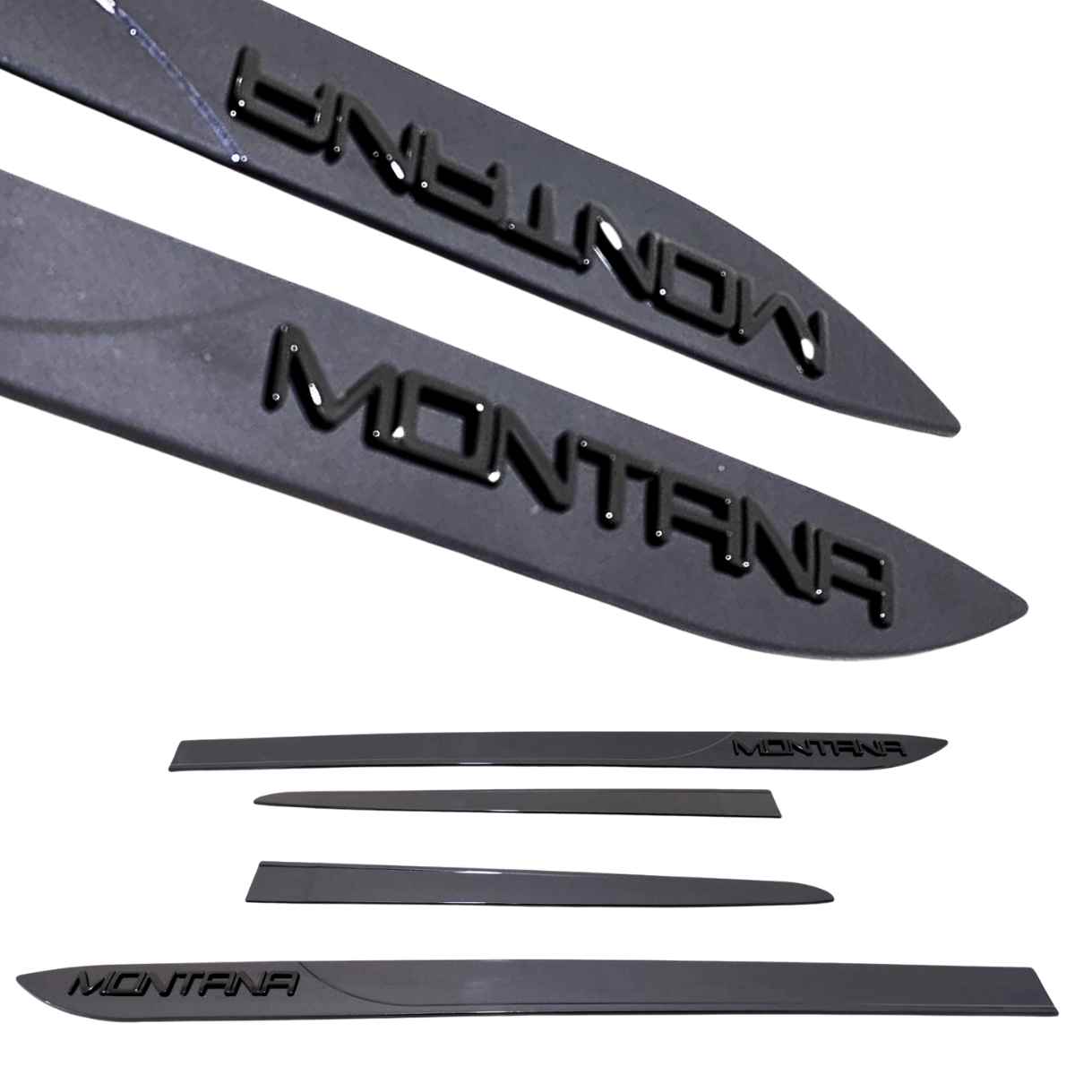 Jogo de friso lateral Nova Montana na cor Cinza Rush com nome Em alto relevo Black Piano.