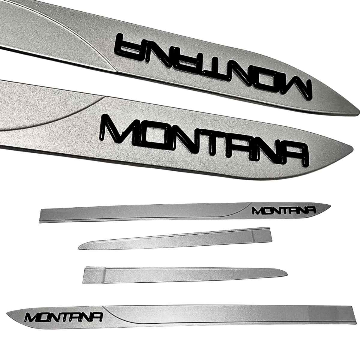 Jogo de friso lateral Nova Montana na cor Prata Shark com nome Em alto relevo Black Piano.