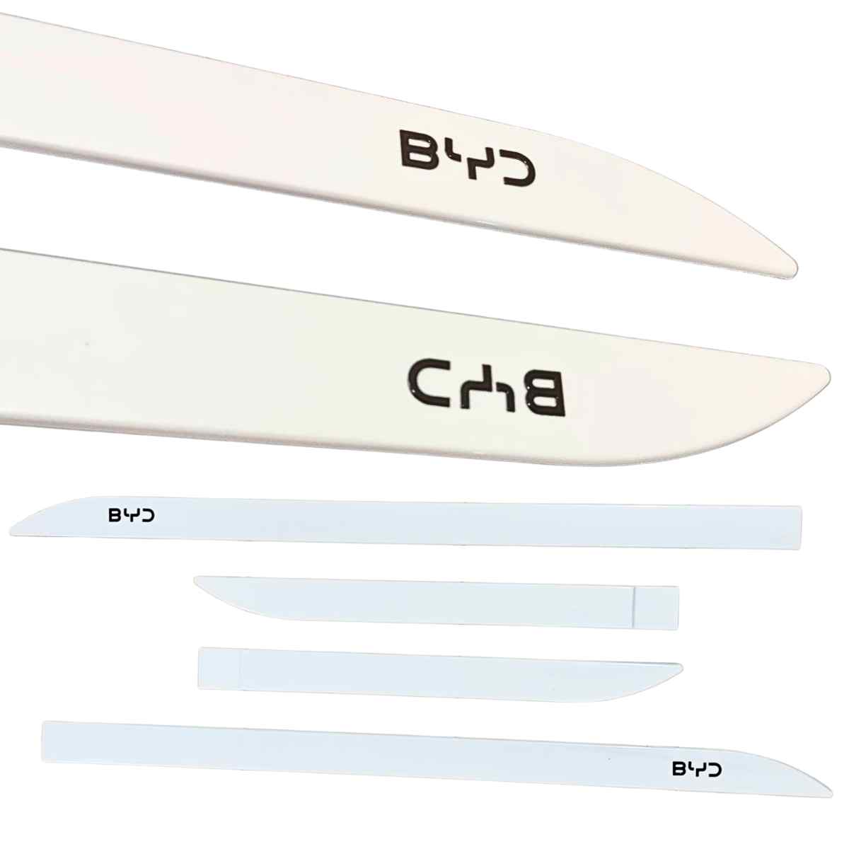 Jogo Friso Lateral BYD Song Plus 2023/2024/2025 Branco perolizado Snow White Com nome em alto relevo Black Piano.