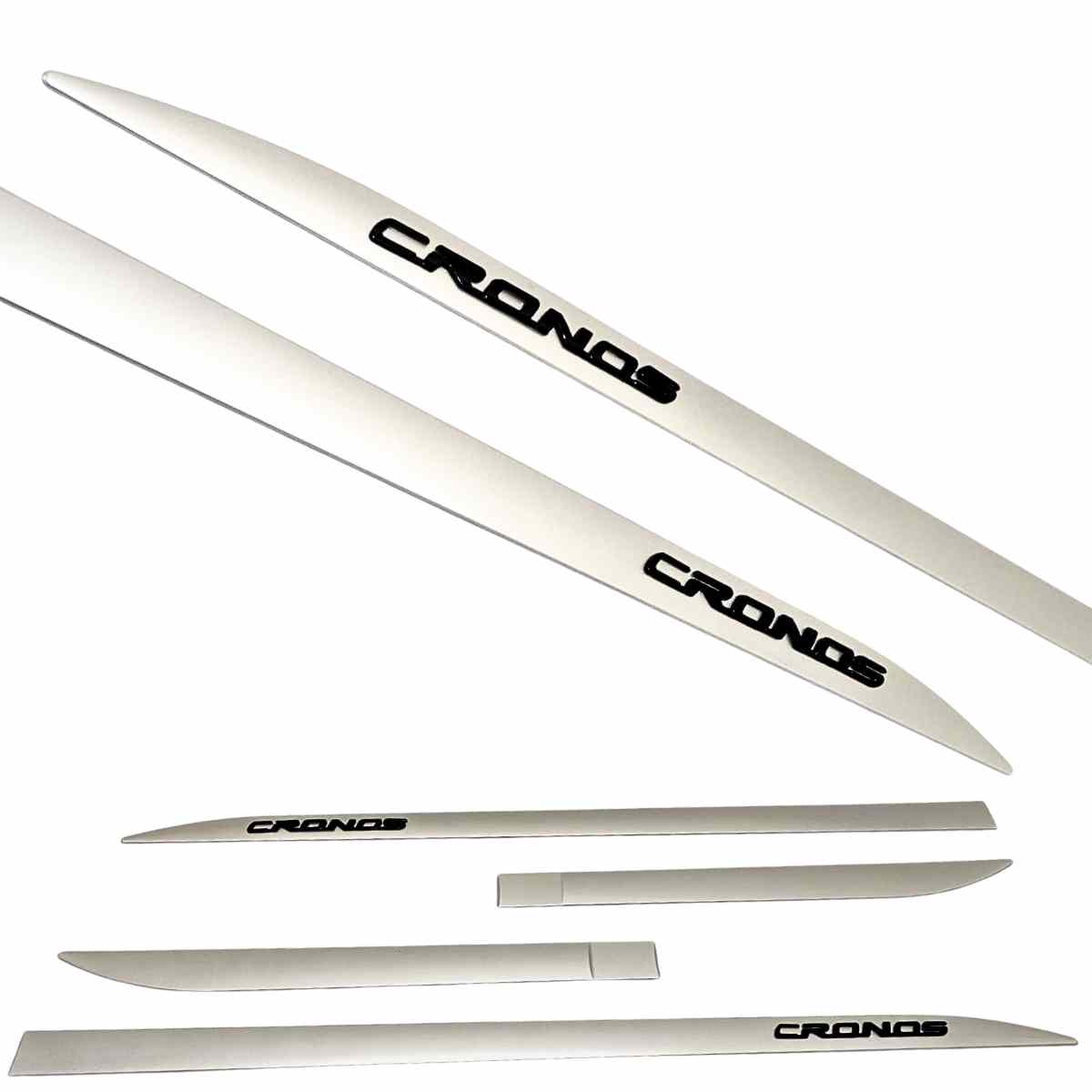 O acabamento na cor tonalidade do veiculo e o nome “Cronos” em alto relevo Black Piano proporcionam uma aparência elegante e discreta, sem descaracterizar o carro. Ideal para quem utiliza o veículo em ambiente urbano e deseja preservar a pintura contra pequenos impactos, riscos de portas e batidas leves em estacionamentos.