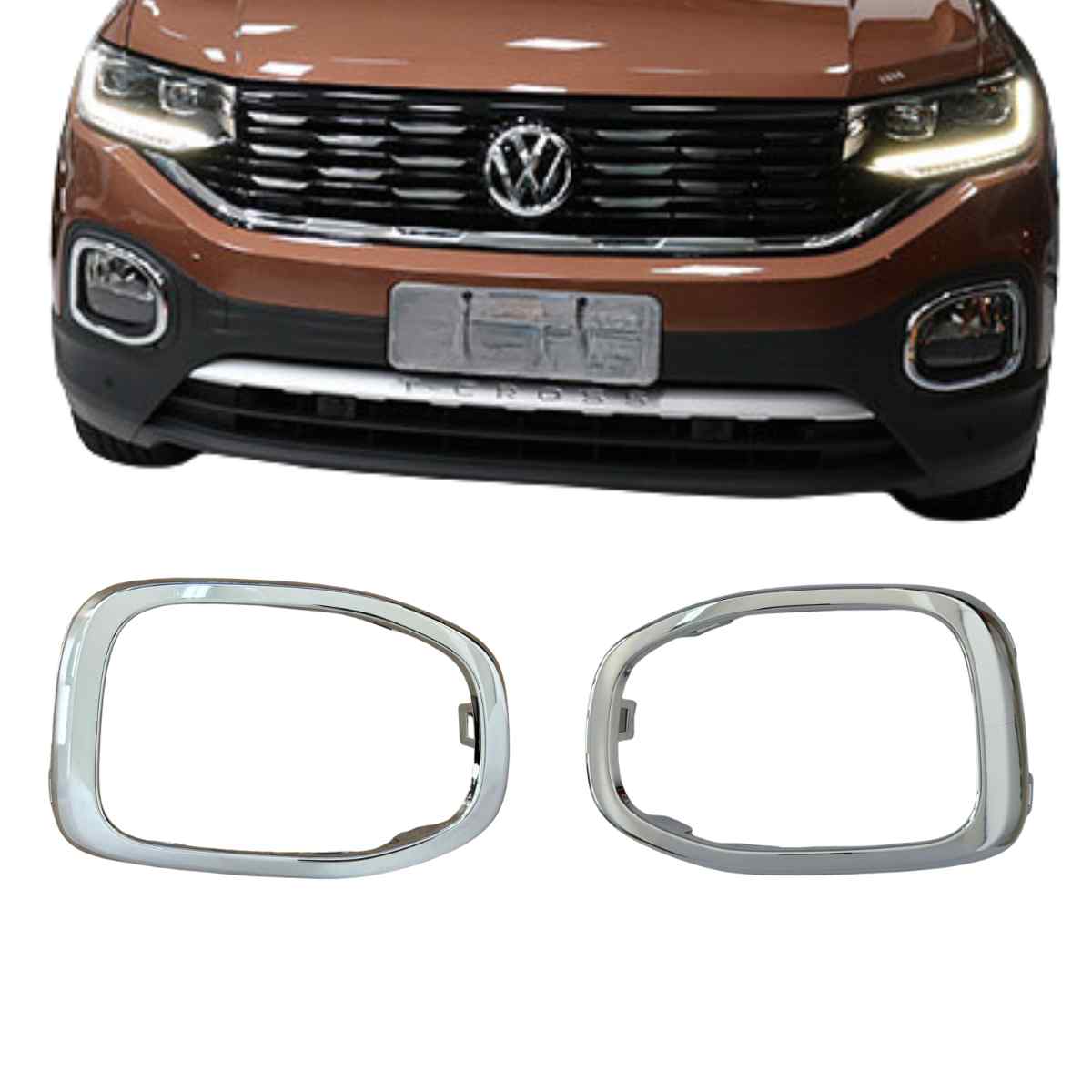 Par de Moldura Cromado Original para Farol de Milha Volkswagen T-cross 2019 ate 2021.